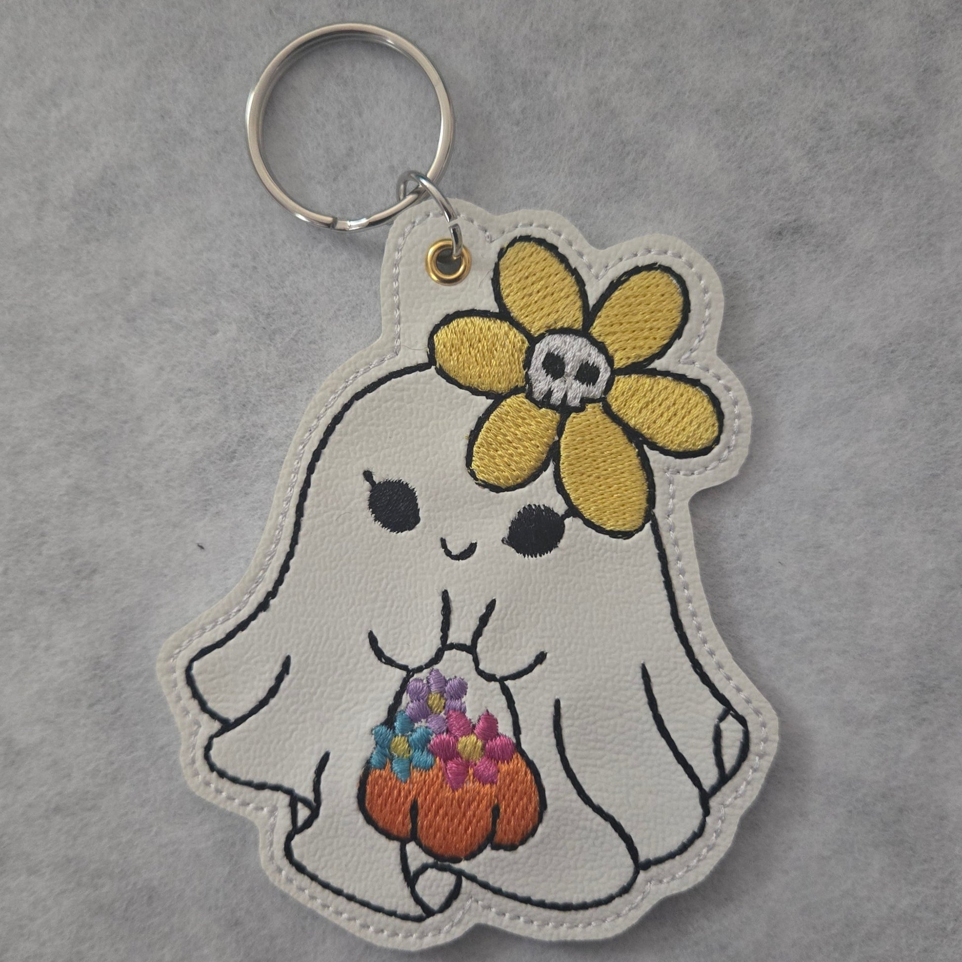 Ghost with Flowers Embroidered Vinyl Key Tag