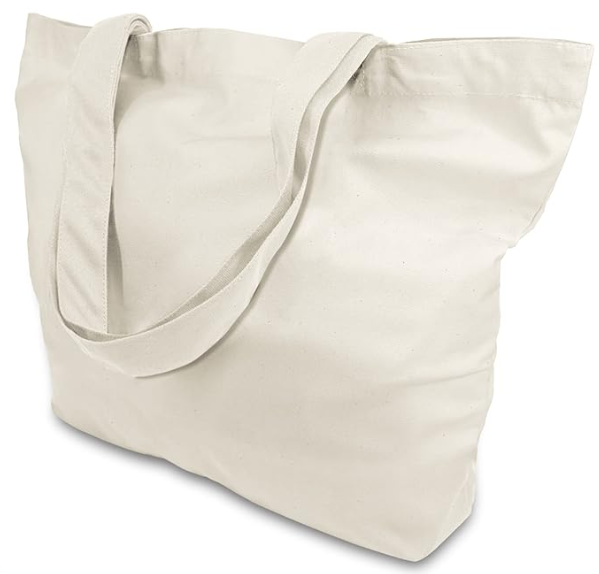 Tote Bag (black or natural): 15" tall x 18-1/2" wide x 4.8" deep; Handles: 100% cotton canvas fabric, 10-1/2" handle drop
