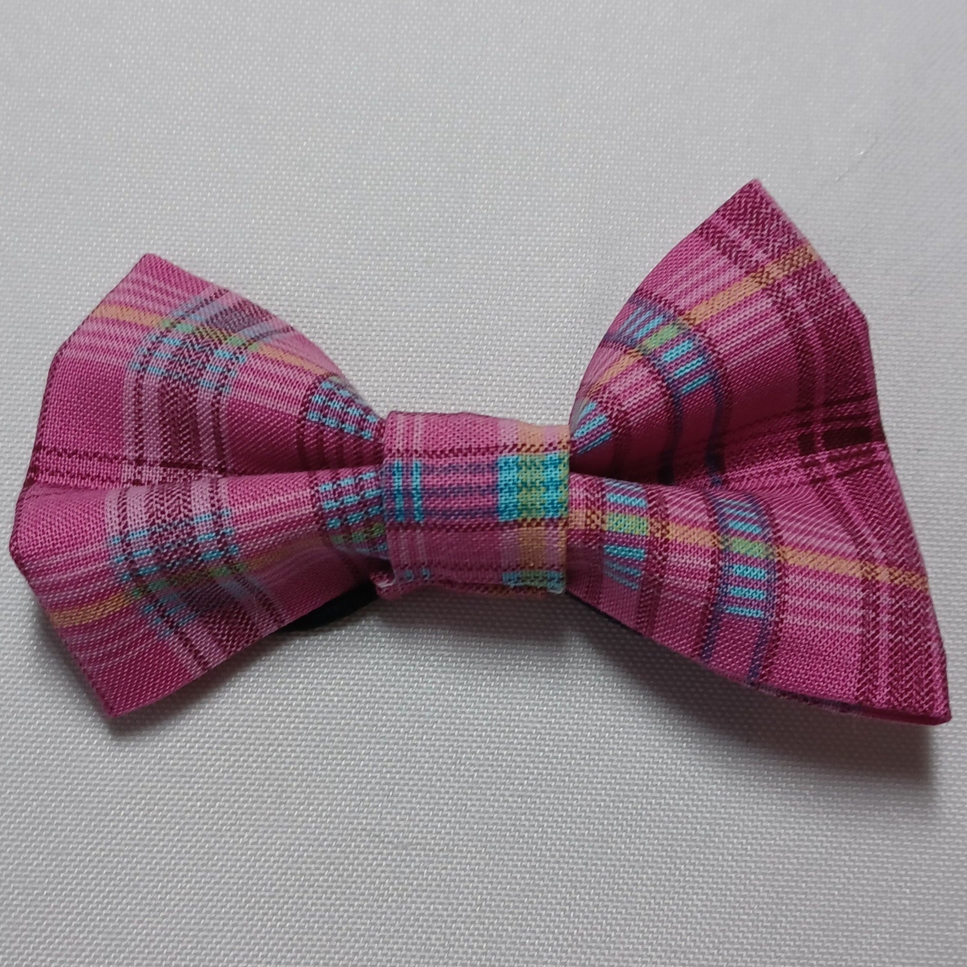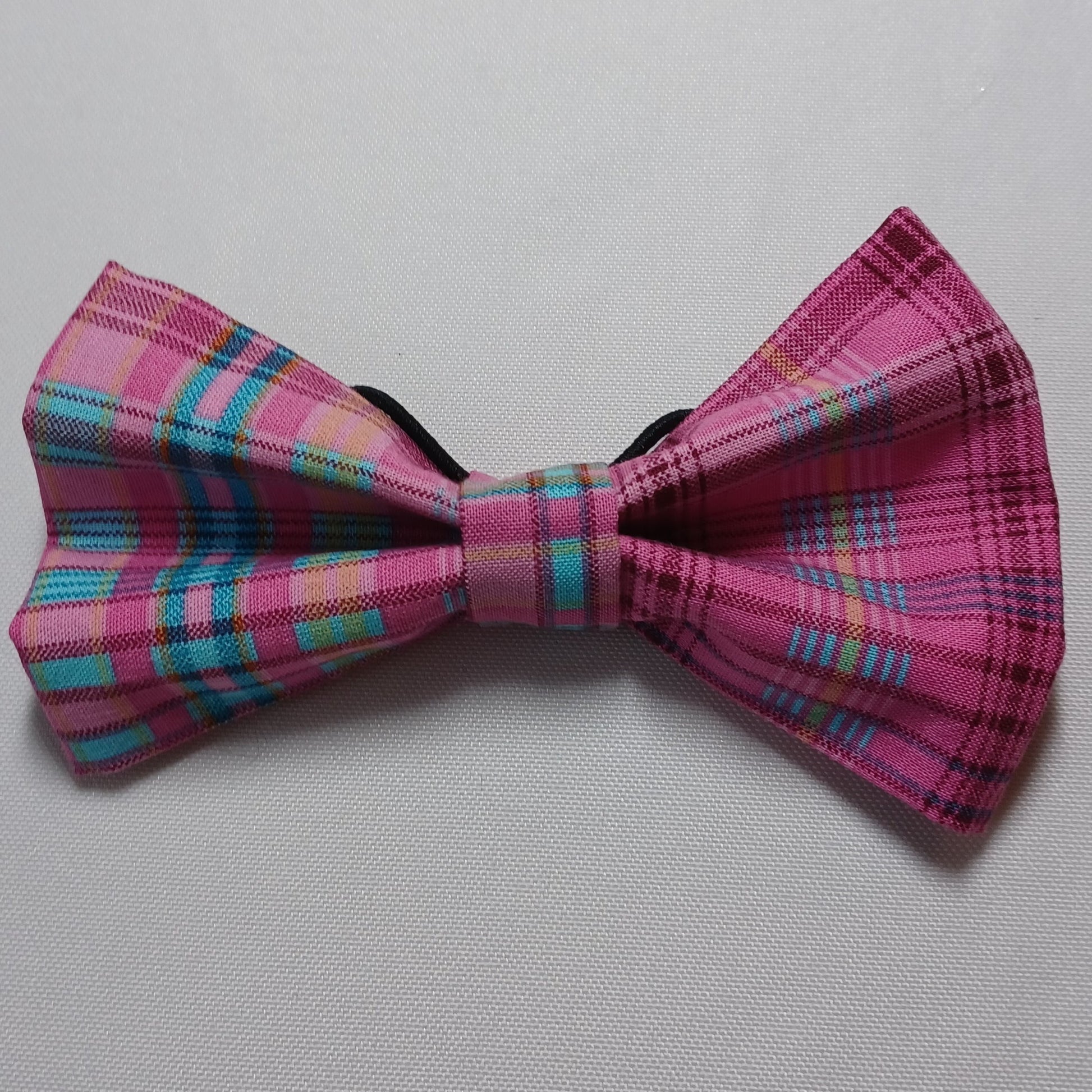 Pink with Blue Plaid Over-the-Collar Pet Bow / Bowtie
