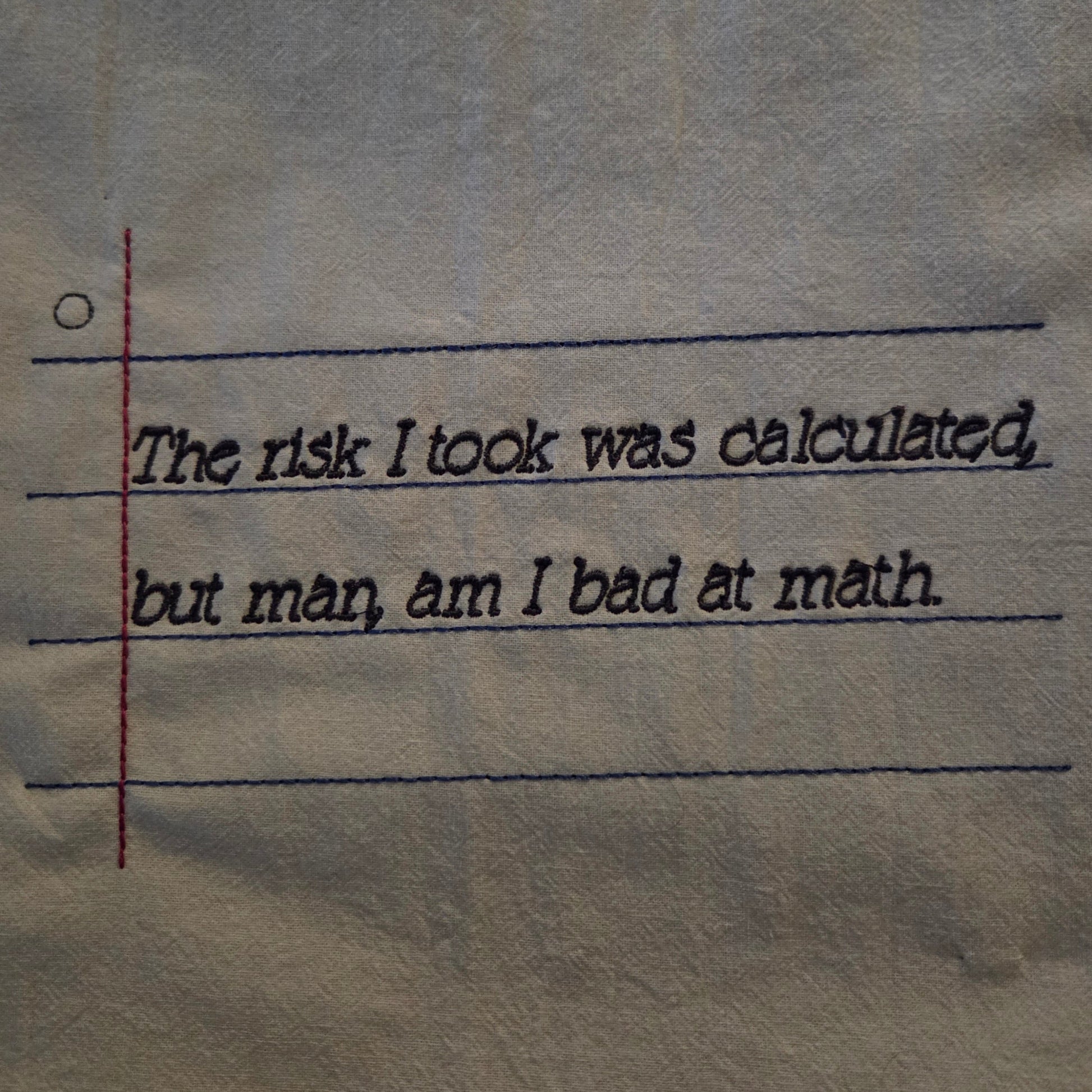 The risk I took was calculated, but man, am I bad at math (Embroidered CYO)