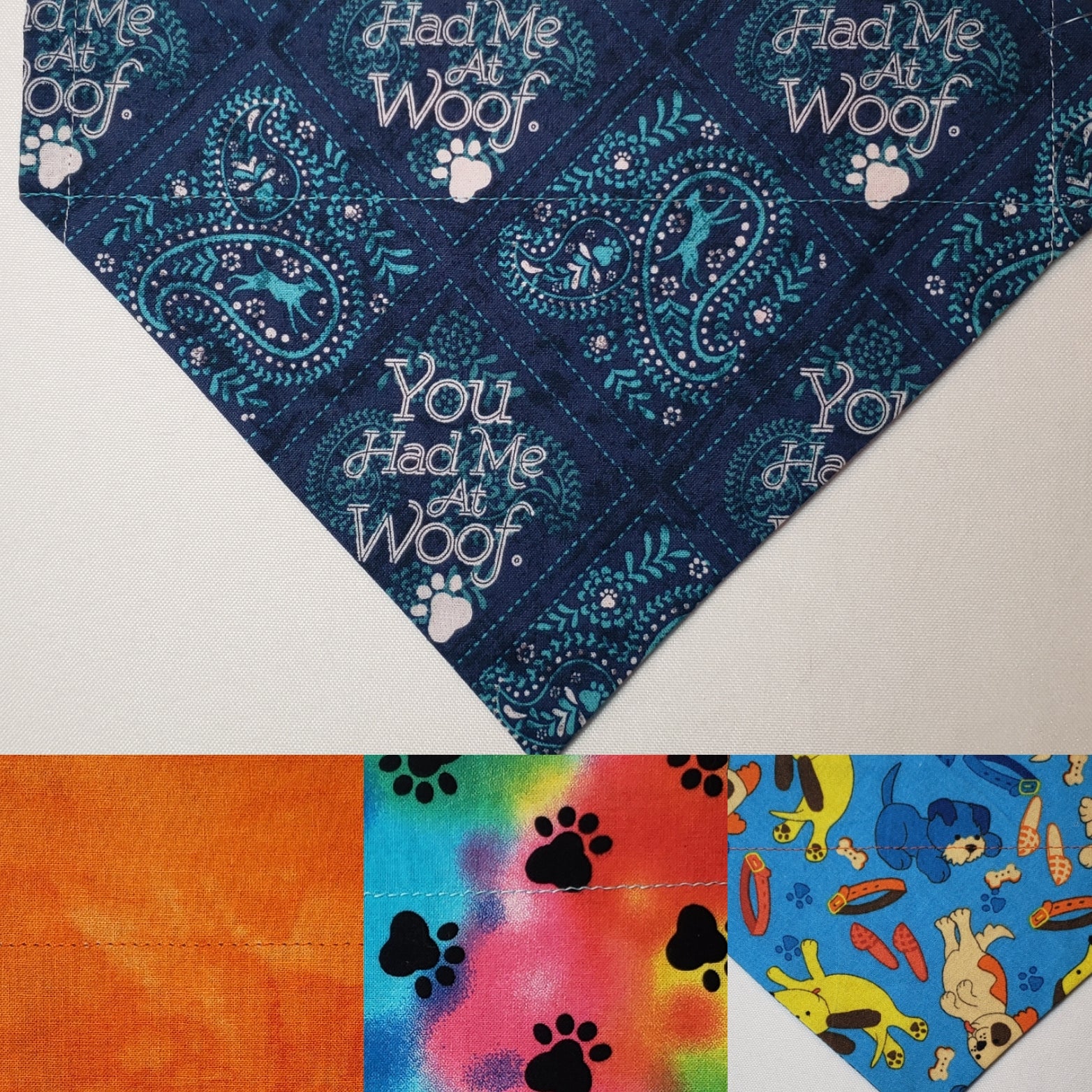 "You Had Me At Woof" Blue Bandana Print Over-the-Collar Pet Bandana